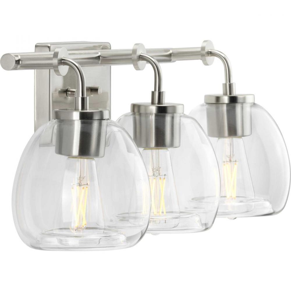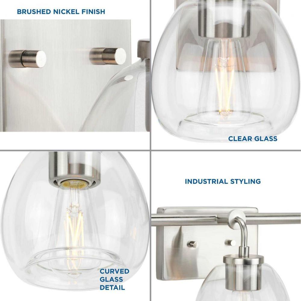 Ideal for a bathroom;Perfect for urban industrial, farmhouse, and rustic style settings;Beautiful brushed nickel finish;Bell-shaped clear glass;Mount the light fixture facing up or down;Uses 3 medium base base bulbs that are sold separately (60 W max - LED
