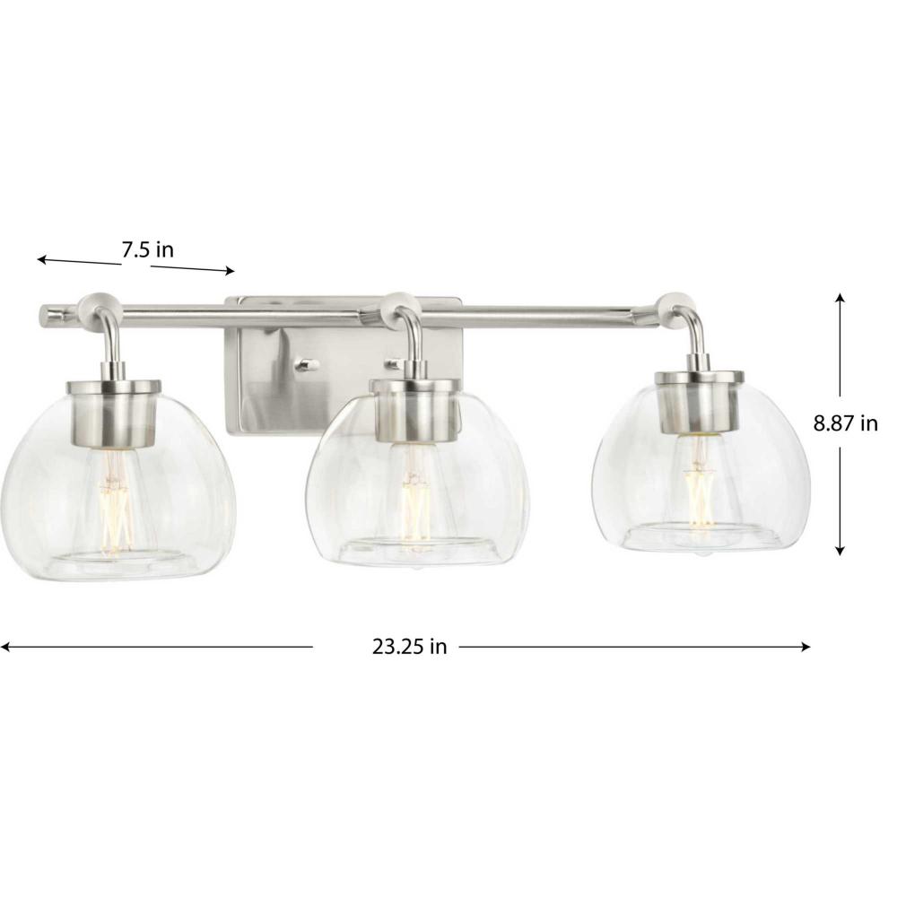Progress P300347-009 - Caisson Collection Three-Light Brushed Nickel Clear Glass Urban Industrial Bath Vanity Light