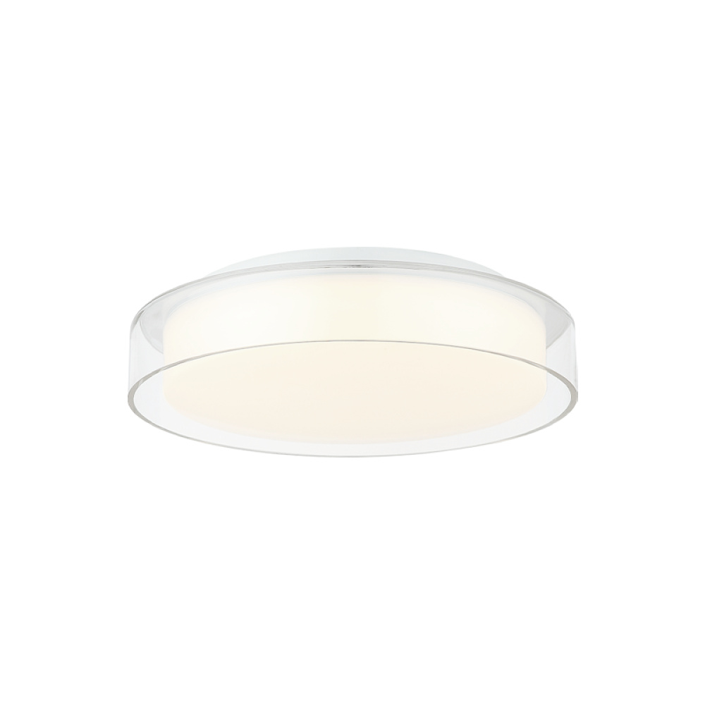 Callum Ultra modern flush mount, the Callum is a very sleek design. Clear glass frame surrounds a white acrylic shade which results in an understated but stunning look. Available in 2 sizes: 14” and 18”. *Features a 3CCT to adjust the 3 selectable colour temperature