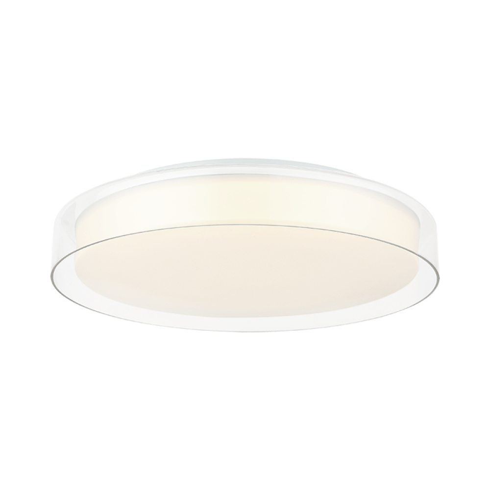 Callum Ultra modern flush mount, the Callum is a very sleek design. Clear glass frame surrounds a white acrylic shade which results in an understated but stunning look. Available in 2 sizes: 14” and 18”. *Features a 3CCT to adjust the 3 selectable colour temperature