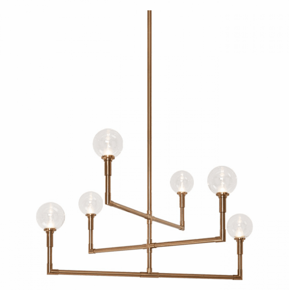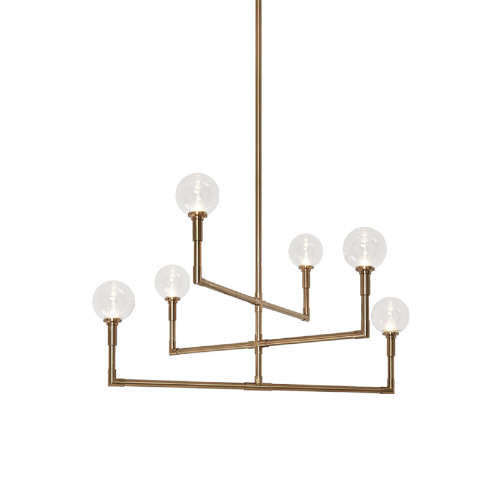 The captivating Candelstix chandelier comes in 6 light and 8 light version. Clean lines and open airy look will definitely make an impact. Available in Aged Gold Brass and Black with either Clear or Opal Glass.