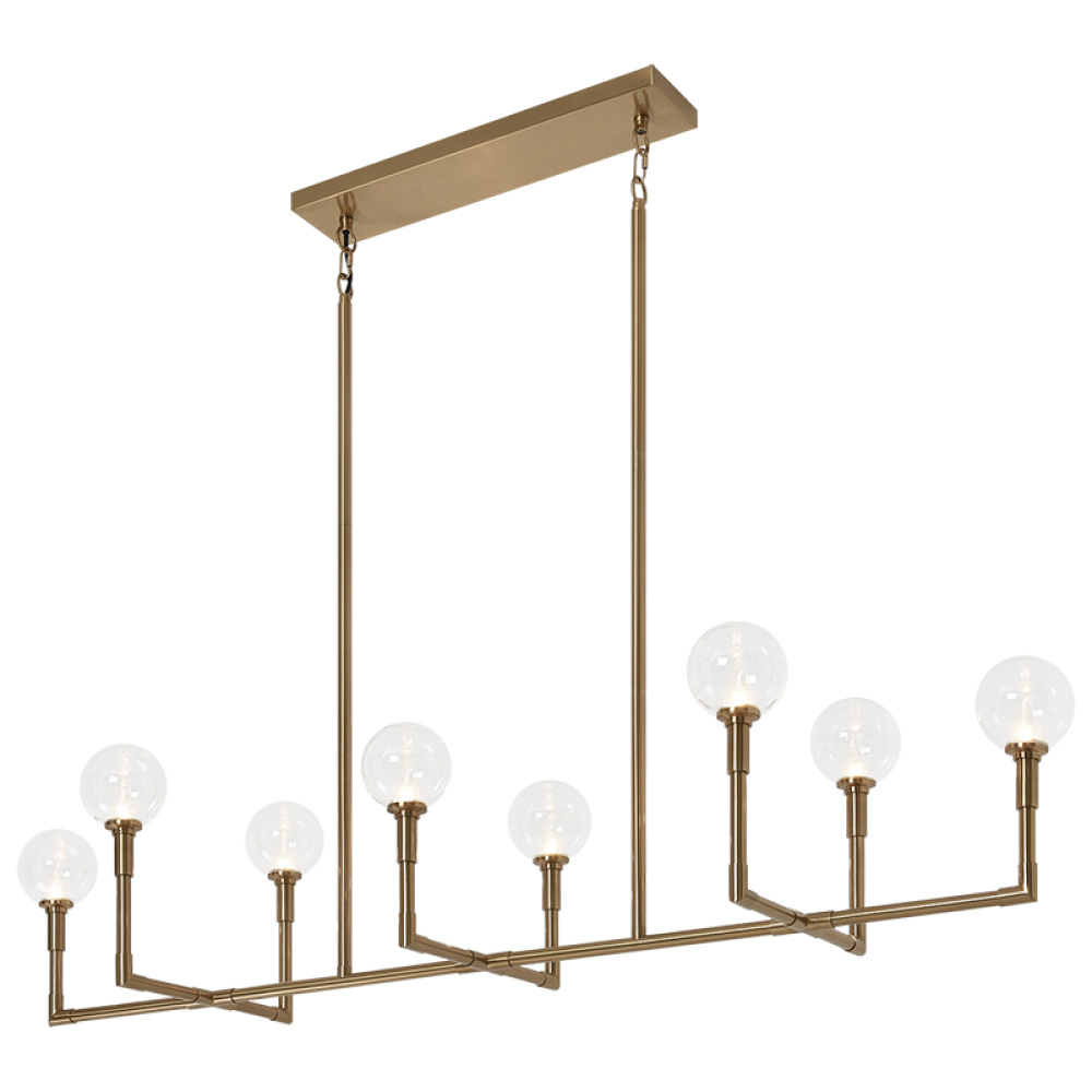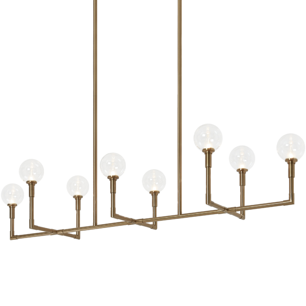 The captivating Candelstix chandelier comes in 6 light and 8 light version. Clean lines and open airy look will definitely make an impact. Available in Aged Gold Brass and Black with either Clear or Opal Glass.