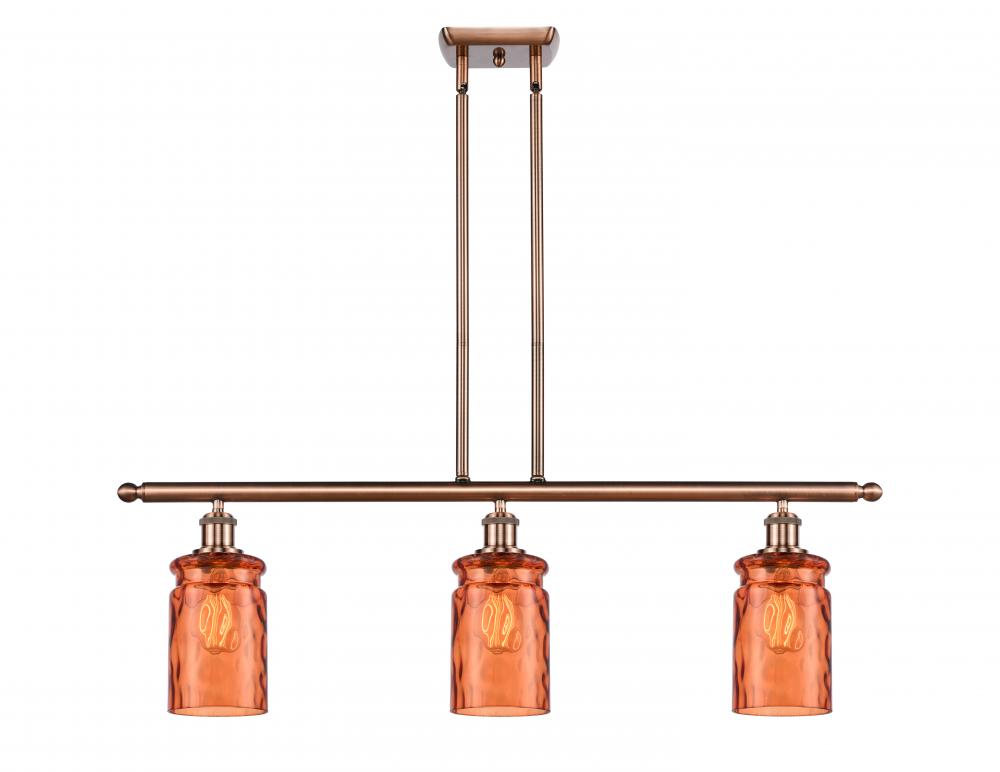 Candor - 3 Light 36" - Stem Hung Island Light - Incandescent Bulb - Antique Copper Finish - Turmeric Waterglass Shade