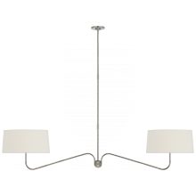 Canto 68" Linear Chandelier in Bronze and Brass with Linen Shades