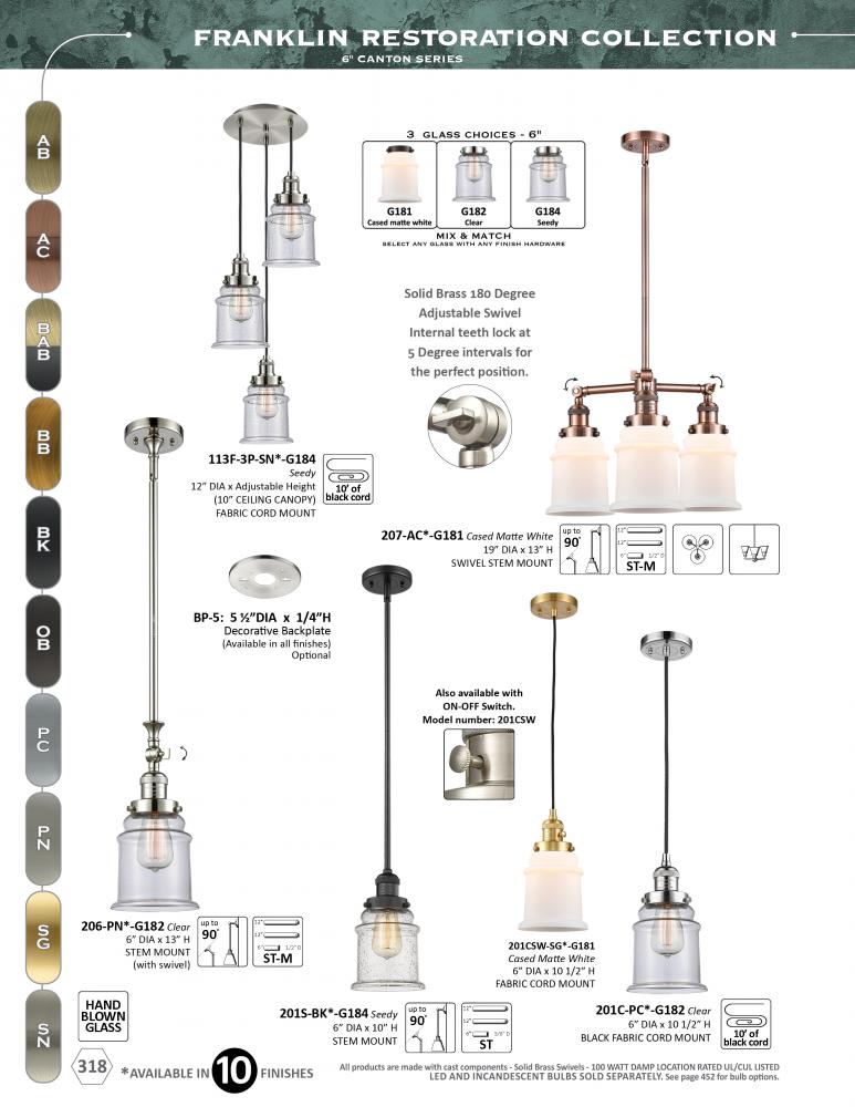 The Franklin Restoration collection is comprised of heavy cast components that give the fixture a heavy Industrial look and feel. We offer the fixture in 10 finishes with a Bare Bulb look or with over 100 possible metal and glass shade options that can cha