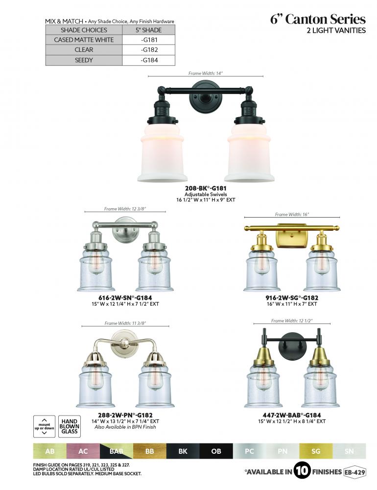 Innovations Lighting 208L-AB-G182 - Canton - 2 Light - 6 inch - Antique Brass - Adjustable Bath Vanity Light
