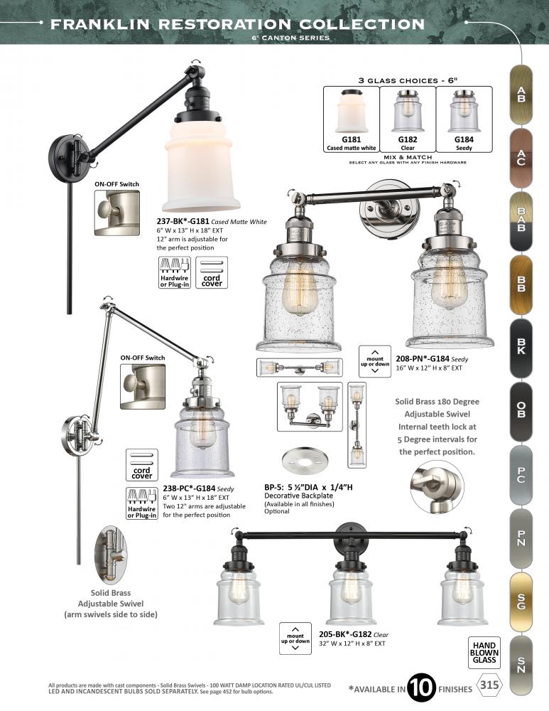 The Franklin Restoration collection is comprised of heavy cast components that give the fixture a heavy Industrial look and feel. We offer the fixture in 10 finishes with a Bare Bulb look or with over 100 possible metal and glass shade options that can cha