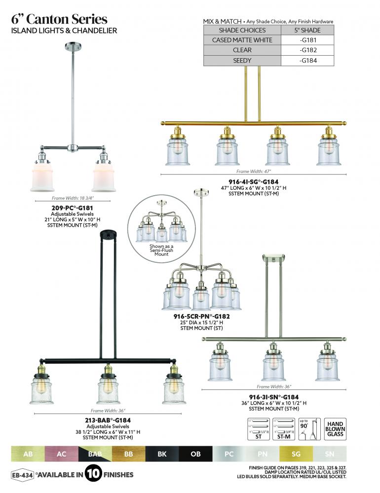 Innovations Lighting 214-BB-G182 - Canton - 4 Light - 51 inch - Brushed Brass - Stem Hung - Adjustable Island Light