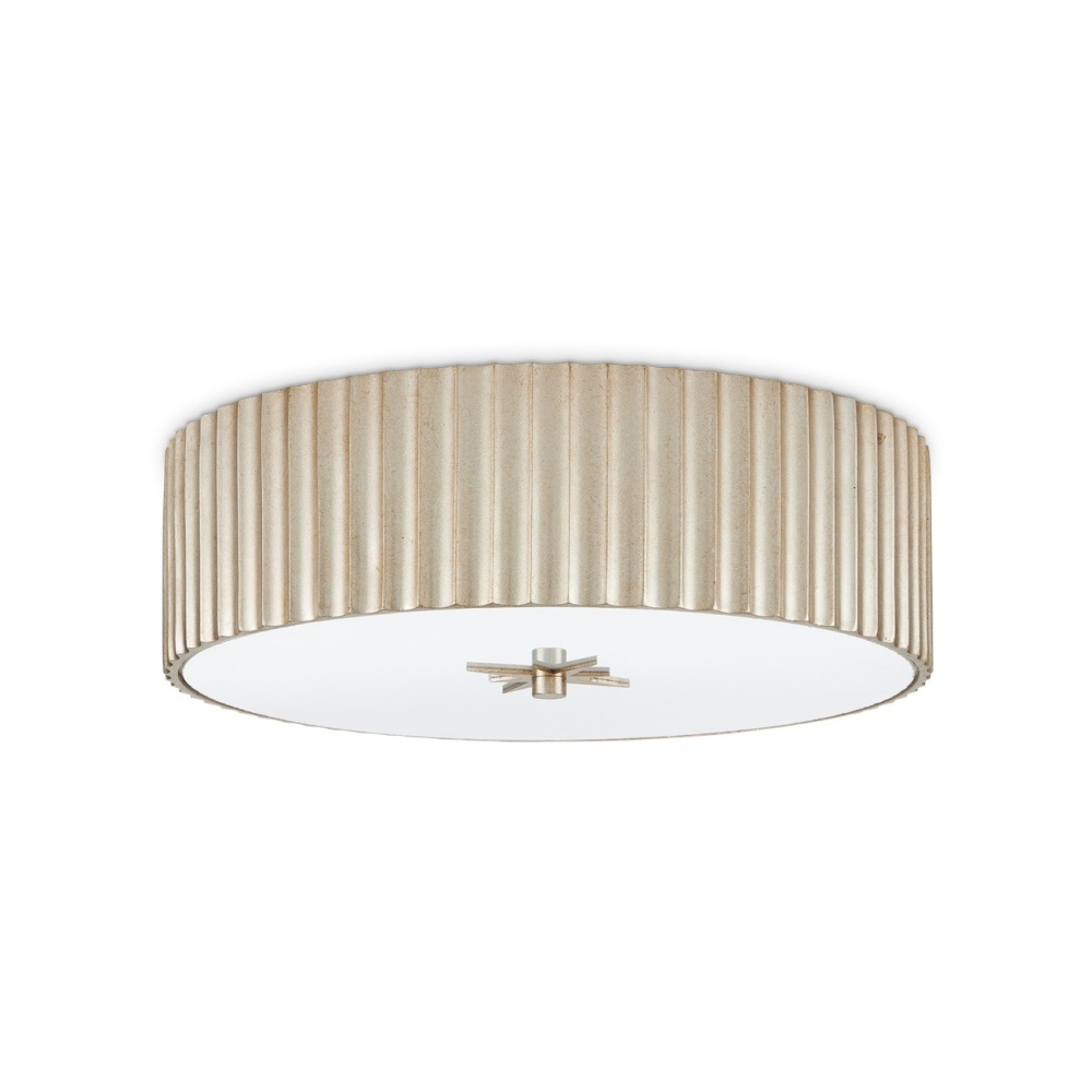 The Caravel Silver Flush Mount is a classic flush-mount design made of composite with a silver leaf finish. We've fitted the Caravel with a frosted glass diffuser, which will soften the light wafting from the integrated LED lbulbs. The delineated shape of the profile is a sophisticated design detail.