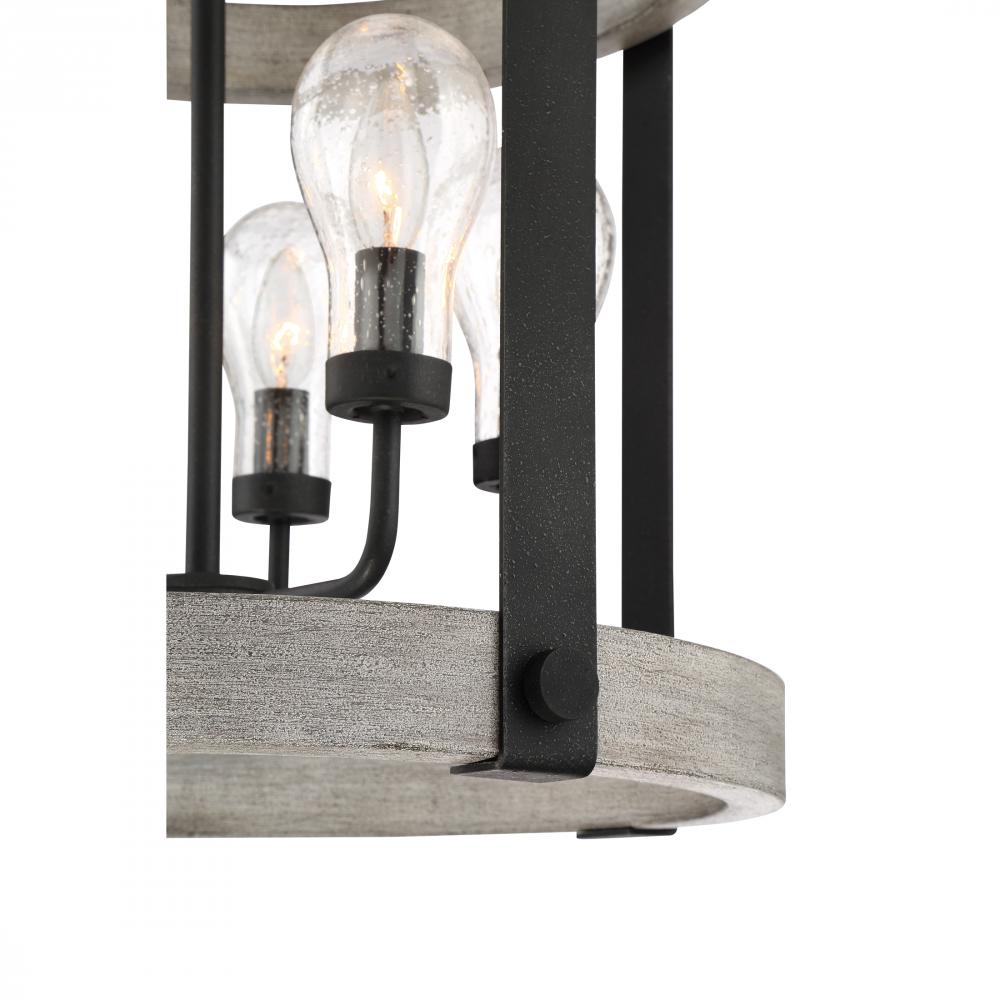 Illuminate your outdoor living space with the Carlisle collection. The whitewash treatment of the painted wood frame complements the deep rustic tone of the Grey Ash finish, creating a rustic, farmhouse style fixture. Seeded glass shades protect the light