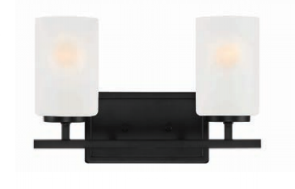 Matte Black 2 Light Vanity with etched glass is part of the Carmine collection