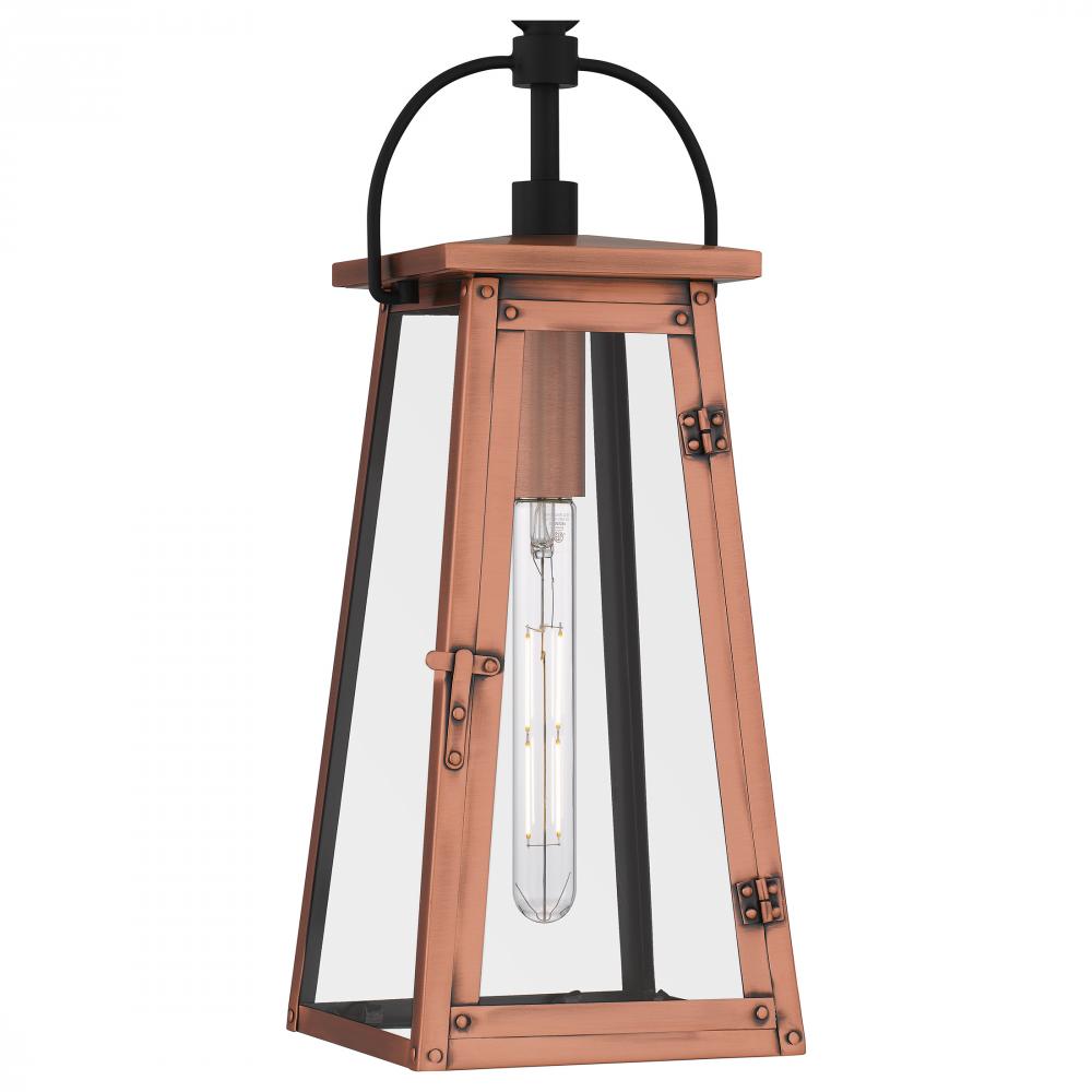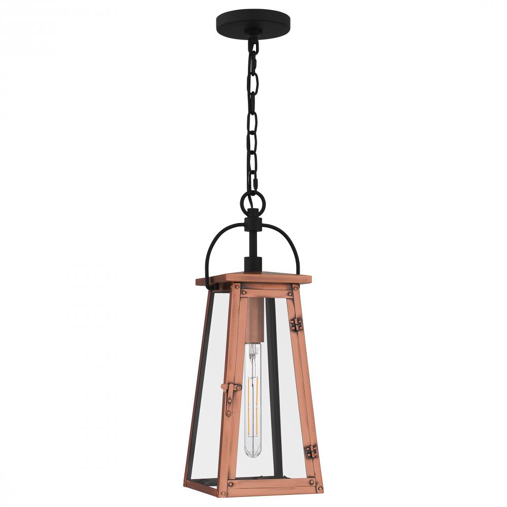 Drawing style inspiration from historical gas lanterns, the Carolina mini pendant light adds romantic charm to any homes interior. The traditional silhouette features an aged copper finish, embellished with hand riveted accents and clear glass panels to ma