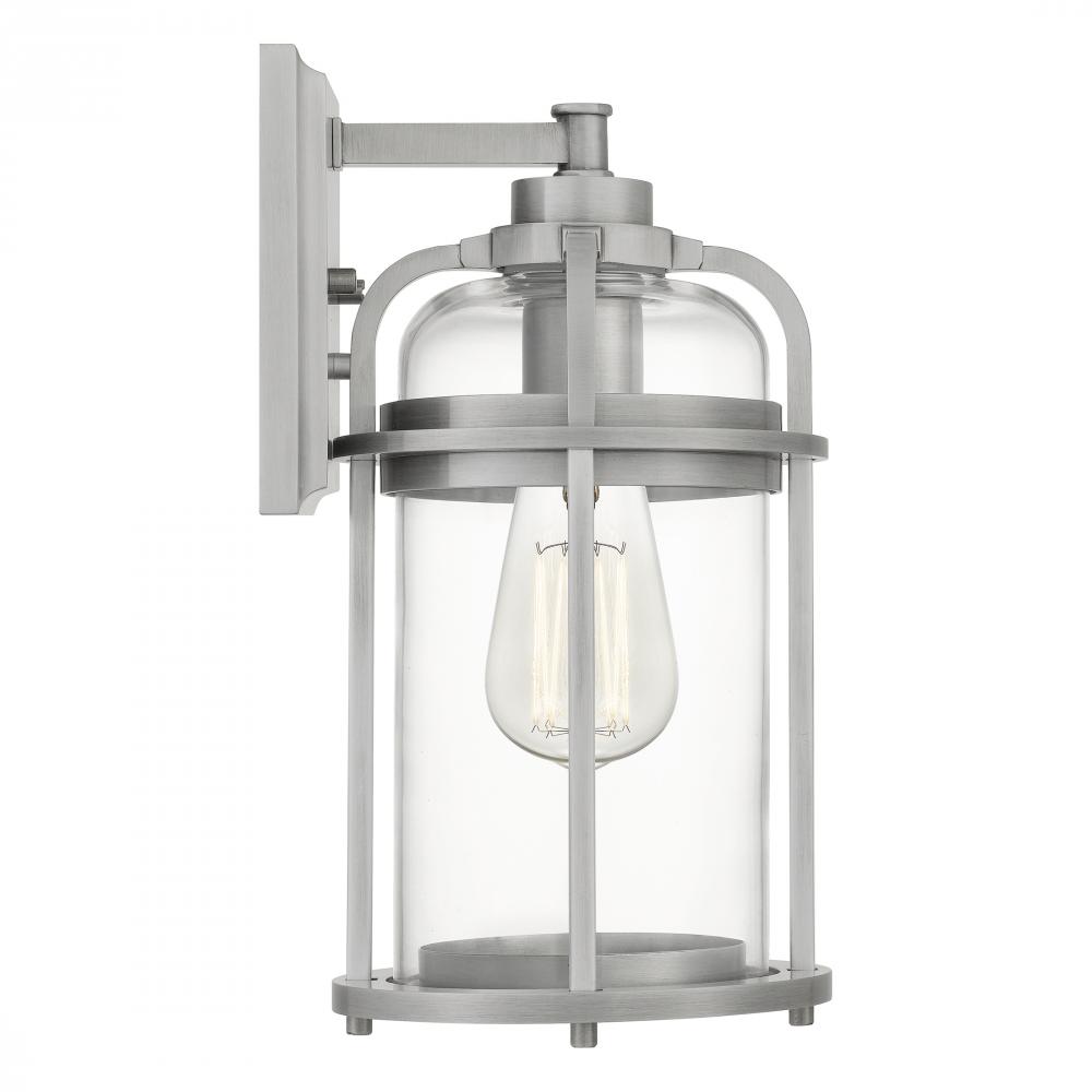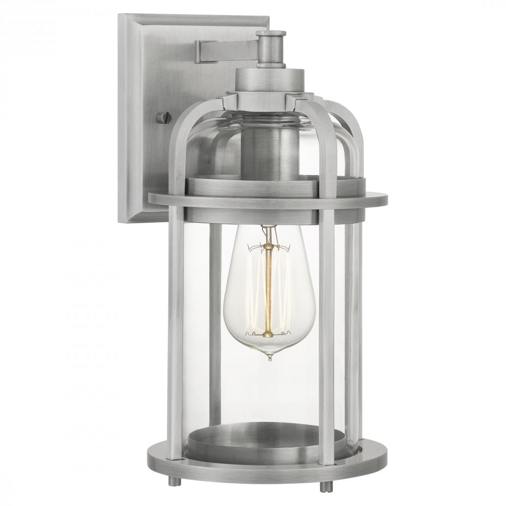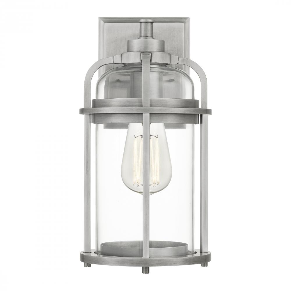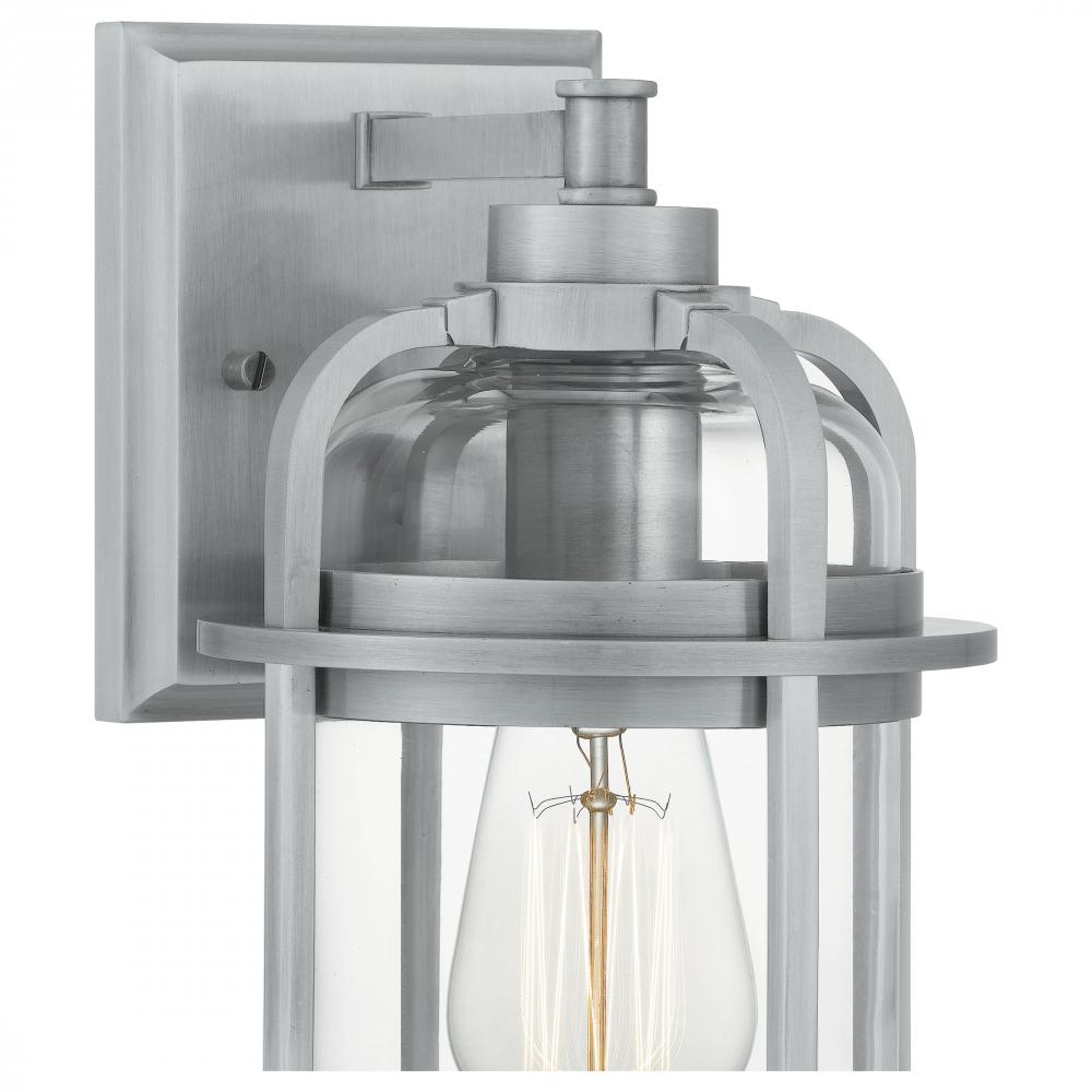 Add a nautical touch to your homes exterior with the Carrington collection. The urn-shape silhouette features an Industrial Aluminum finish and is paired with a clear glass shade. The sturdy metal frame protects the light and adds to the overall aesthetic