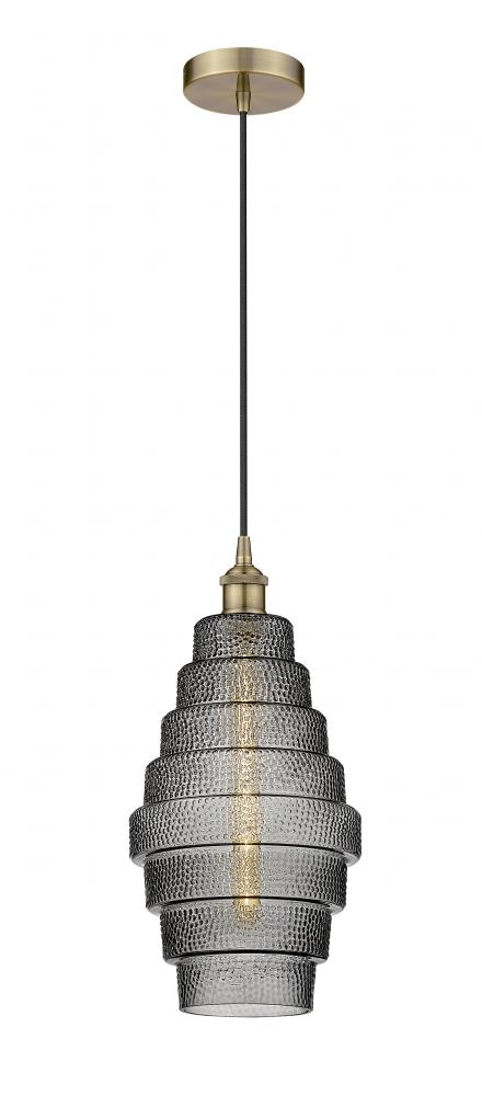 Cascade - 1 Light - 8 inch - Antique Brass - Smoked Shade - Cord hung - Mini Pendant