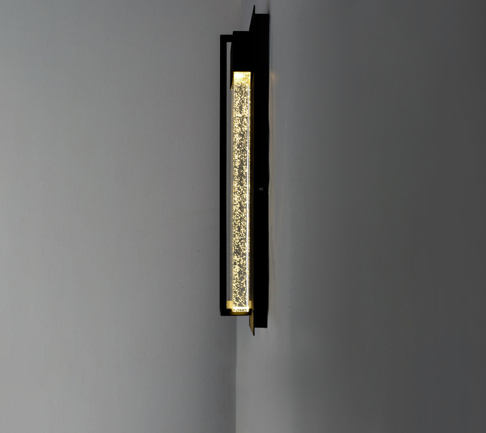 This popular outdoor collection gets an improved facelift and has additional sizes for a more complete collection. The Black finish presents a dramatic background for the solid block of Bubble Glass that is brightly illuminated by the LED concealed in the