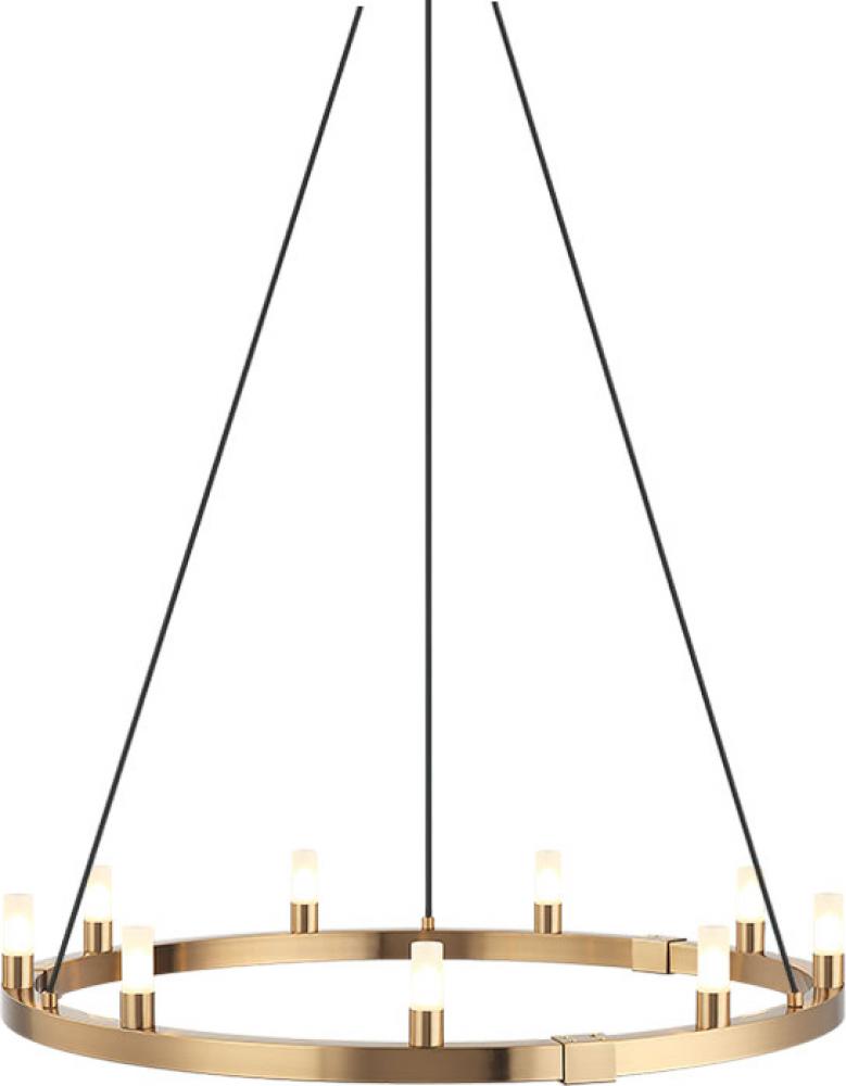 Need a statement piece – The Cascadian series will certainly deliver! Round and rectangular frames are both available and neither style will disappoint. Small glass shades line the Aged Gold Brass or Matte Black frame and are suspended by black fabric cords. Single layer and 2 two tier fixtures equally pack the WOW factor.