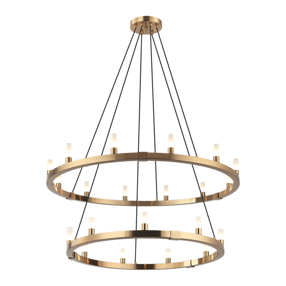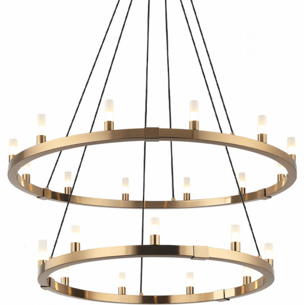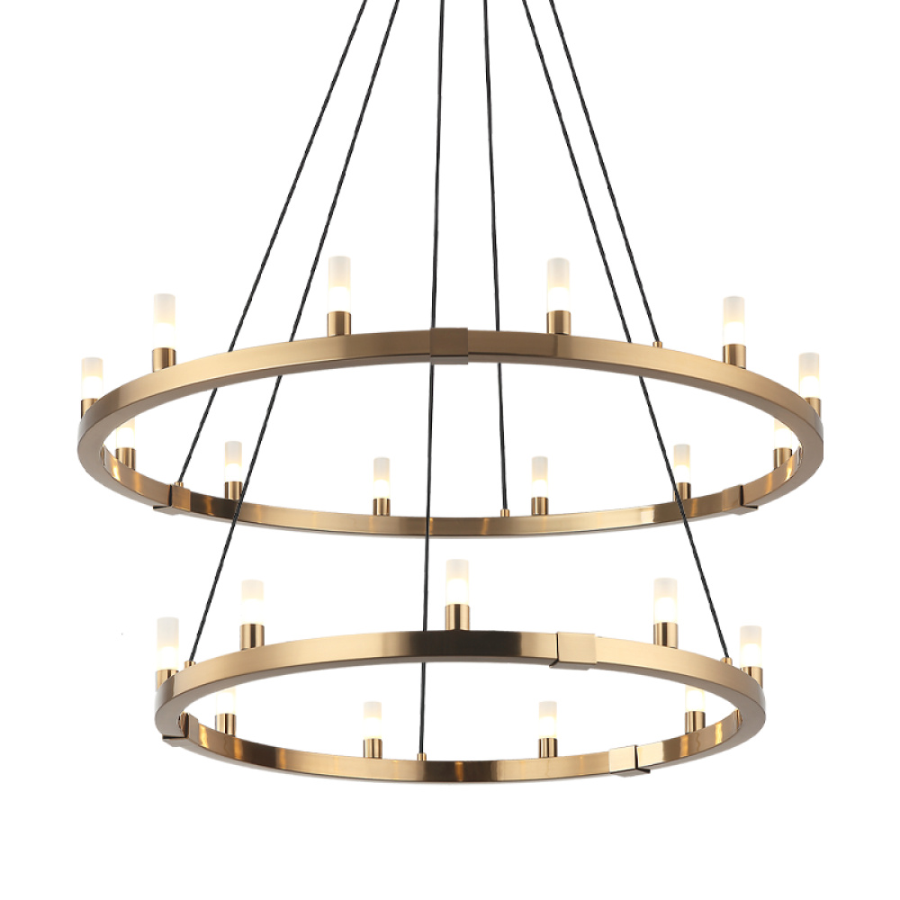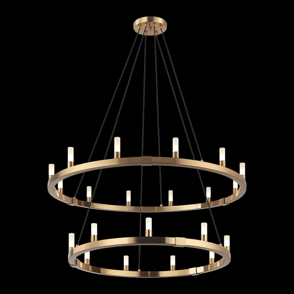 Need a statement piece – The Cascadian series will certainly deliver! Round and rectangular frames are both available and neither style will disappoint. Small glass shades line the Aged Gold Brass or Matte Black frame and are suspended by black fabric cords. Single layer and 2 two tier fixtures equally pack the WOW factor.