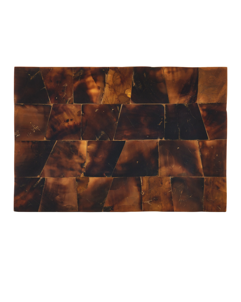 The Casey Brown Box has artisanal surfaces clad in pieces of natural penshells applied like a sophisticated puzzle. Rims of brass-finished stainless steel which enhance the warmth of the design. Though sealed, it is not watertight and should not contain water.