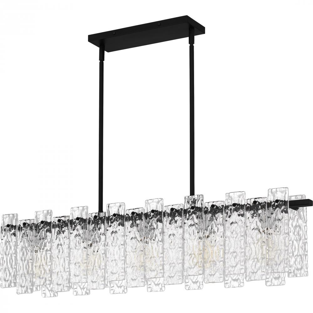 Clear textured glass creates a sense of movement in the Caspian collection. Available as a semi-flush mount or island light, this piece features a matte black finish and integrated LED technology for low maintenance and energy saving lighting. As part of t