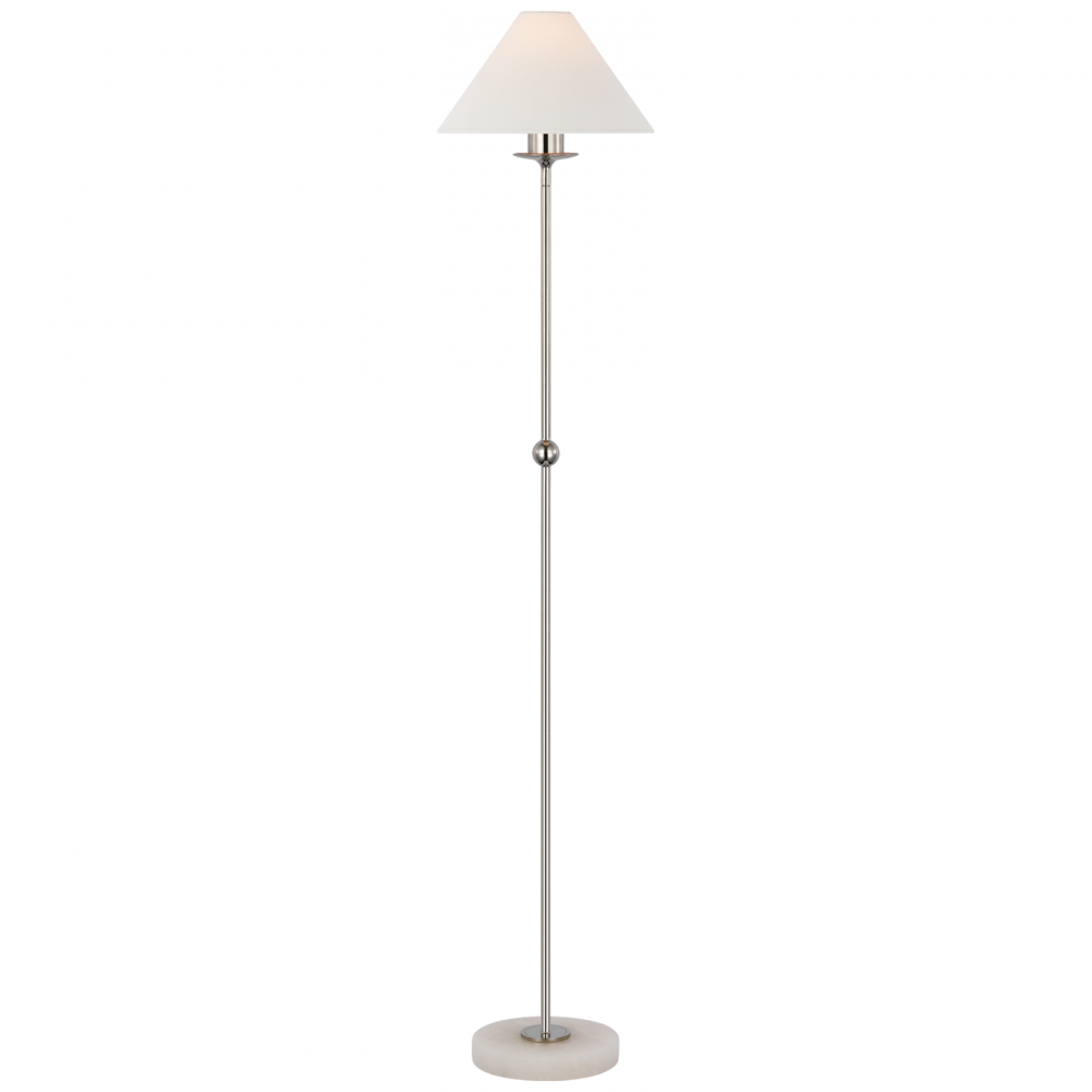 Caspian Medium Floor Lamp in Polished Nickel and Alabaster with Linen Shade