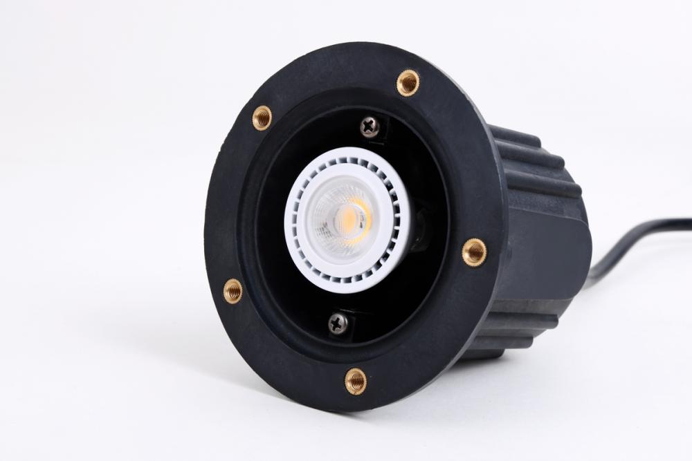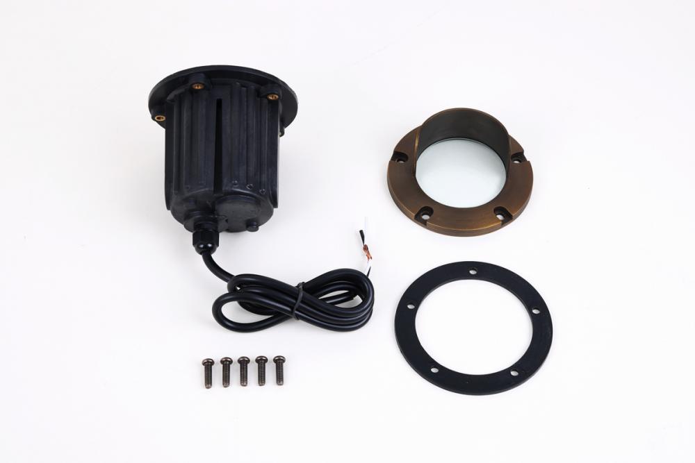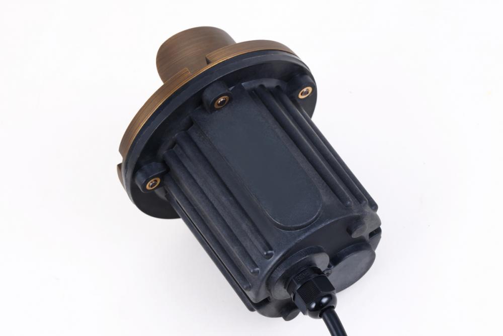 Put the fireflies to shame with Aera collection outdoor landscape well light. The rounded-cylinder frame is made of die-cast brass with an antique-brass finish. The clear glass lens magnifies the power of the internal 50-watt mr16. Unit comes with three feet of wire. Integrated canopy provides a controlled lighting for your landscape