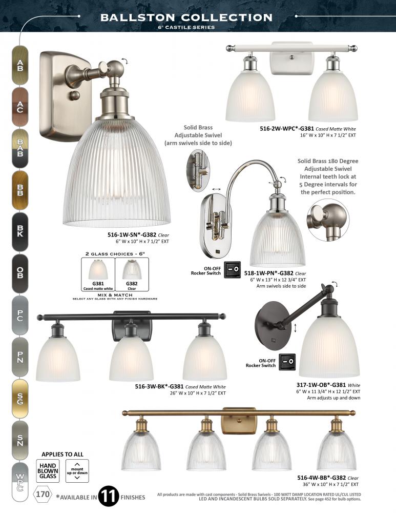 The Ballston collection is comprised of heavy cast components that give the fixture a sturdy contemporary look. We offer the fixture in 11 finishes with a Bare Bulb look or with over 100 possible metal and glass shade options that can change the style to f