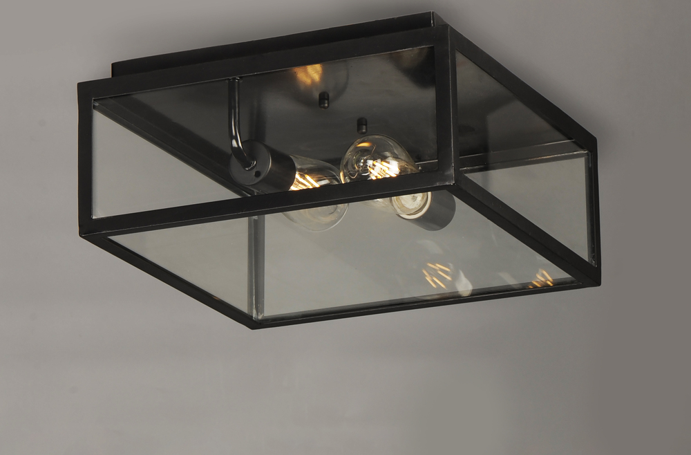 An elongated rectangular shaped design that is both minimalist and industrial. Die cast frames of Dark Bronze support Clear glass panels that provide an unobstructed view of the lantern's interior. Customize with your choice of lamps from vintage to tu