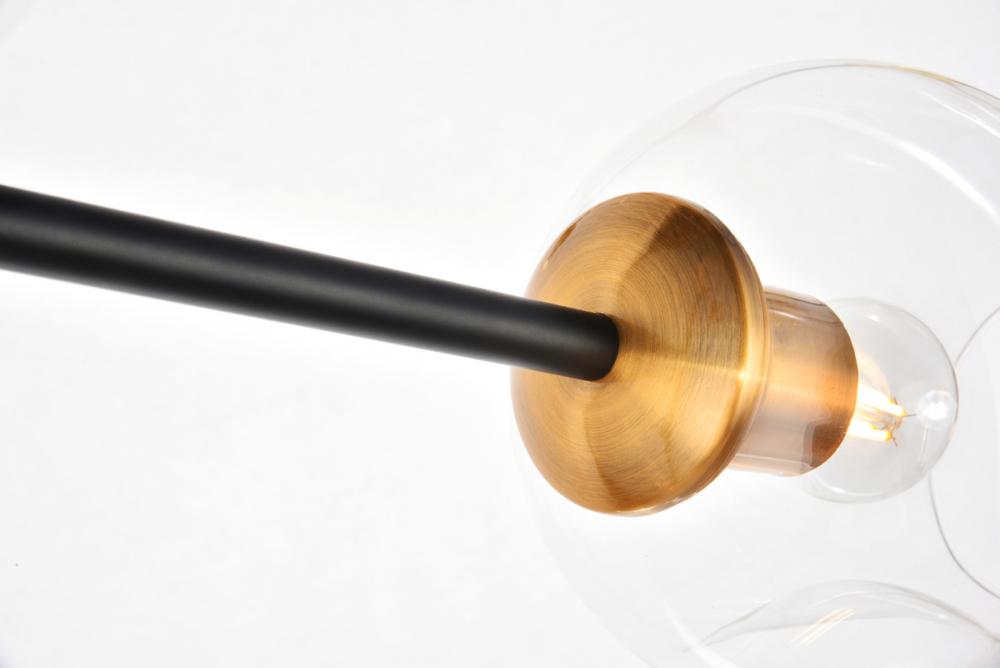 The daring Cavoli pendant lamp in a light antique brass and flat black finish is designed with 7 lights that connect at various angles, illuminating your rooms and ridding them of darkness. The winding paths end with a light encapsulated within a clear shade at each point. This contemporary blend of art and function results in this light that will shine beautifully in any space it adorns.