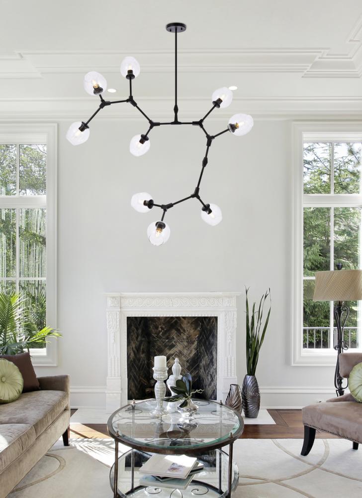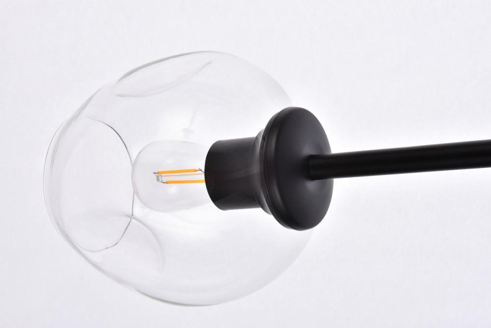 The daring Cavoli pendant lamp in a flat black finish is designed with 9 lights that connect at various angles, illuminating your rooms and ridding them of darkness. The winding paths end with a light encapsulated within a clear shade at each point. This contemporary blend of art and function results in this light that will shine beautifully in any space it adorns.