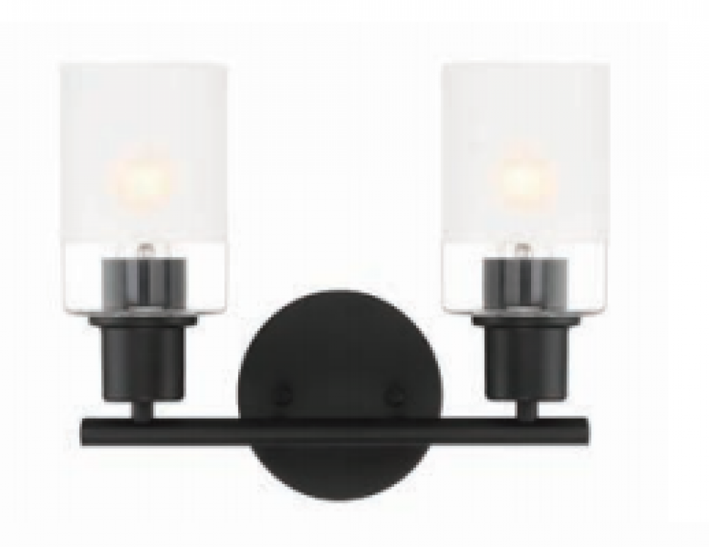 Matte Black 2 Light Vanity with clear and etched glass is part of the Cedar Lane collection