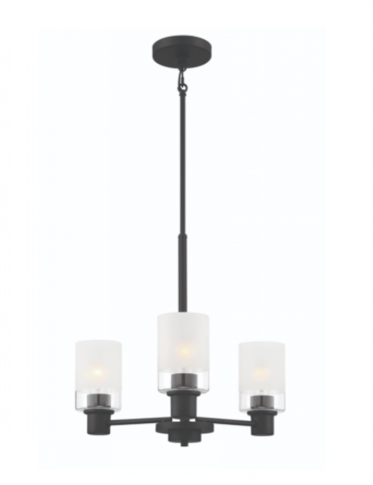Matte Black 3 Light Chandelier with clear and etched glass is part of the Cedar Lane collection