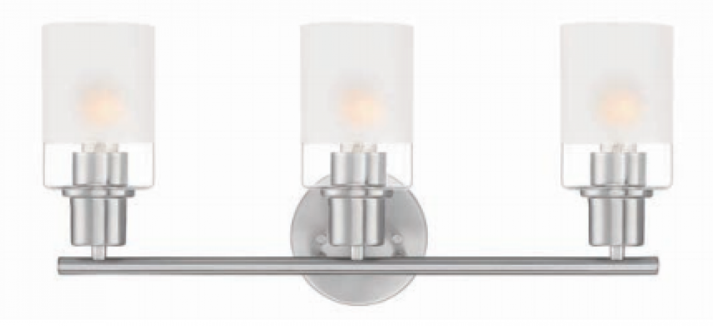 Brushed Nickel 3 Light Vanity with clear and etched glass is part of the Cedar Lane collection