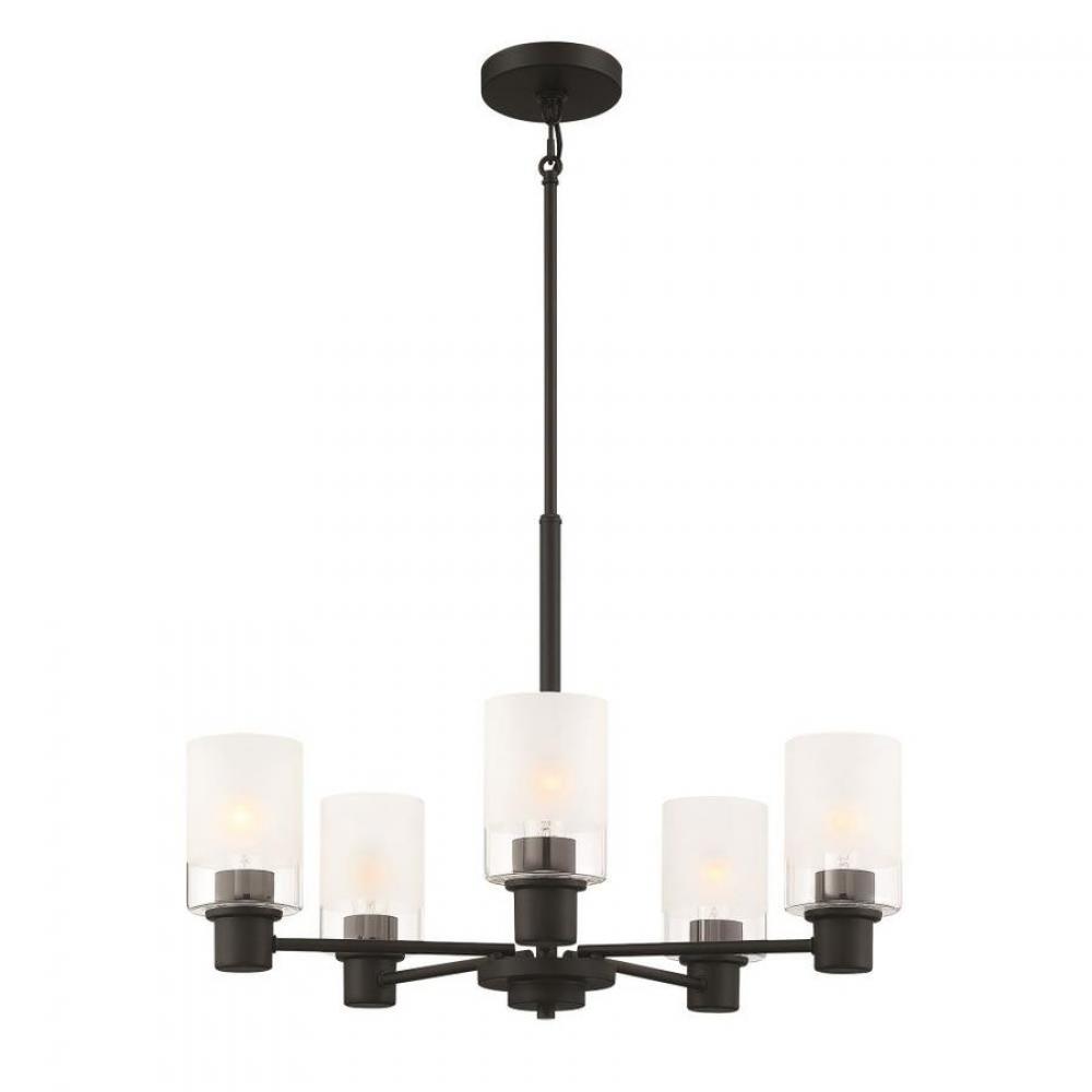 Matte Black 5 Light Chandelier with clear and etched glass is part of the Cedar Lane collection