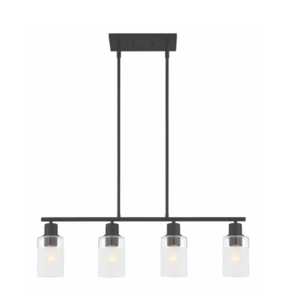 Matte Black 4 Light Island with clear and etched glass is part of the Cedar Lane collection