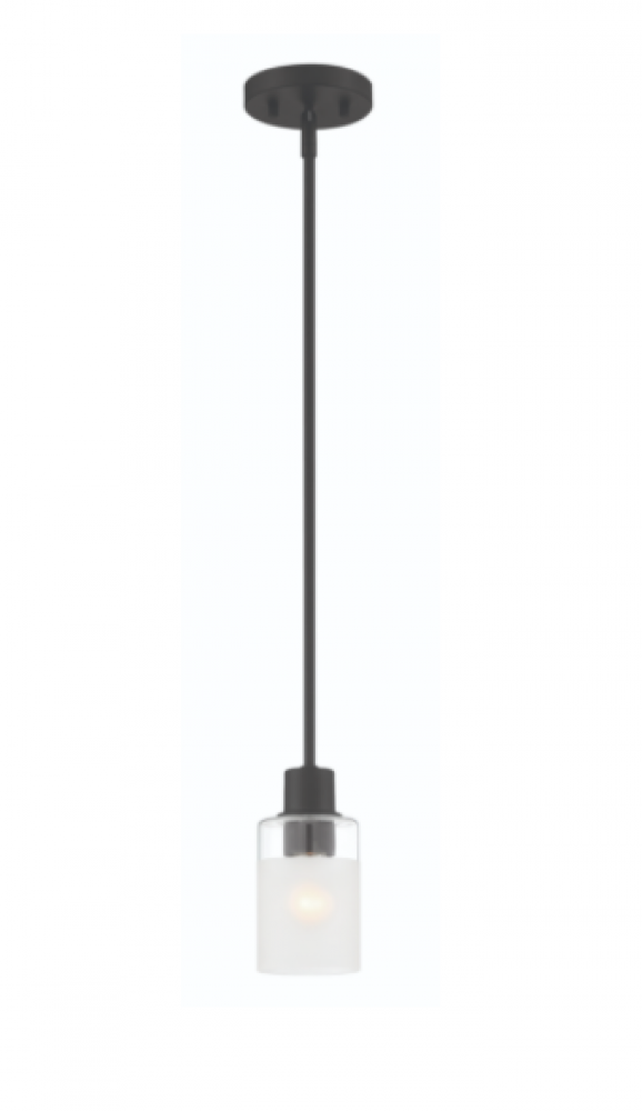 Matte Black 1 Light Pendant with clear and etched glass is part of the Cedar Lane collection