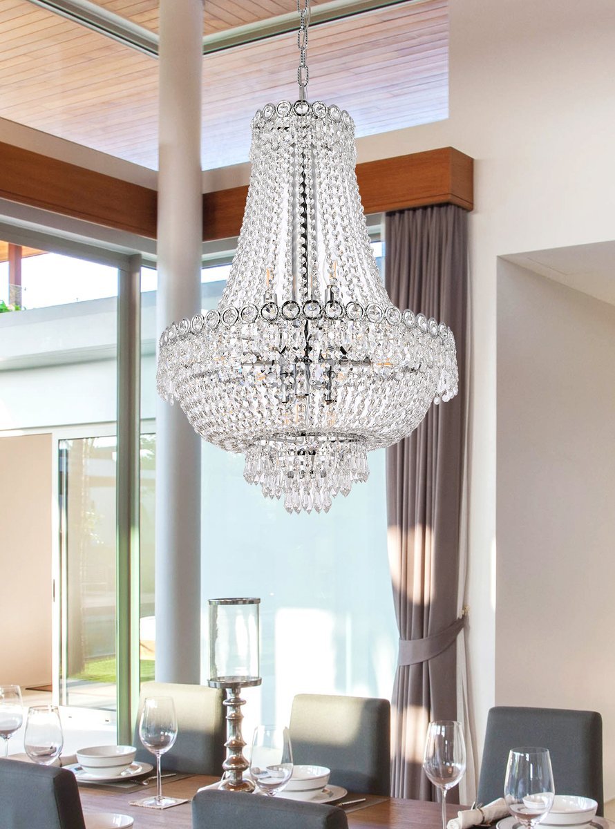 Century 17 light Chrome Chandelier Clear Royal Cut Crystal