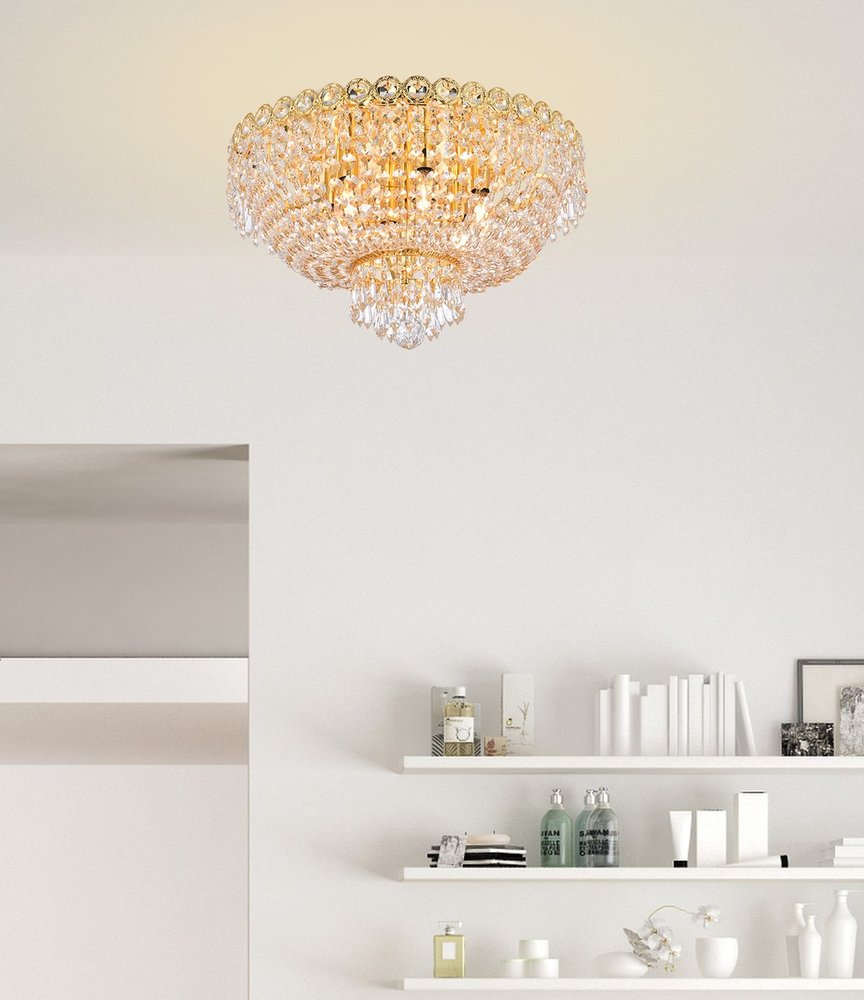 Century 6 light Gold Flush Mount Clear Royal Cut Crystal