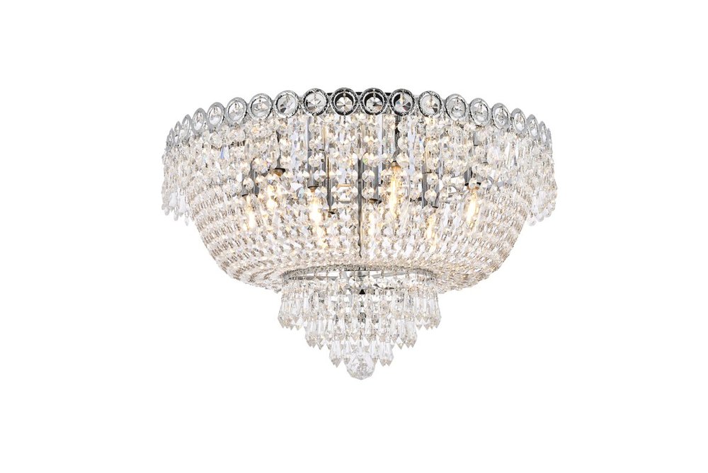 Century 9 light Chrome Flush Mount Clear Royal Cut Crystal