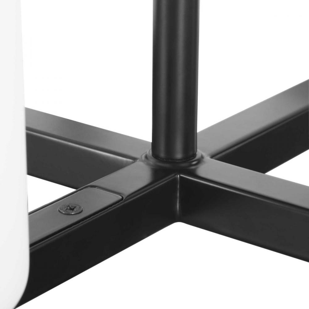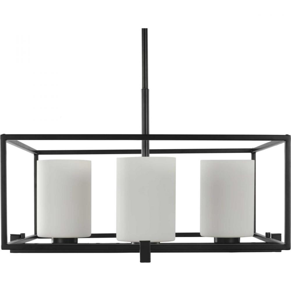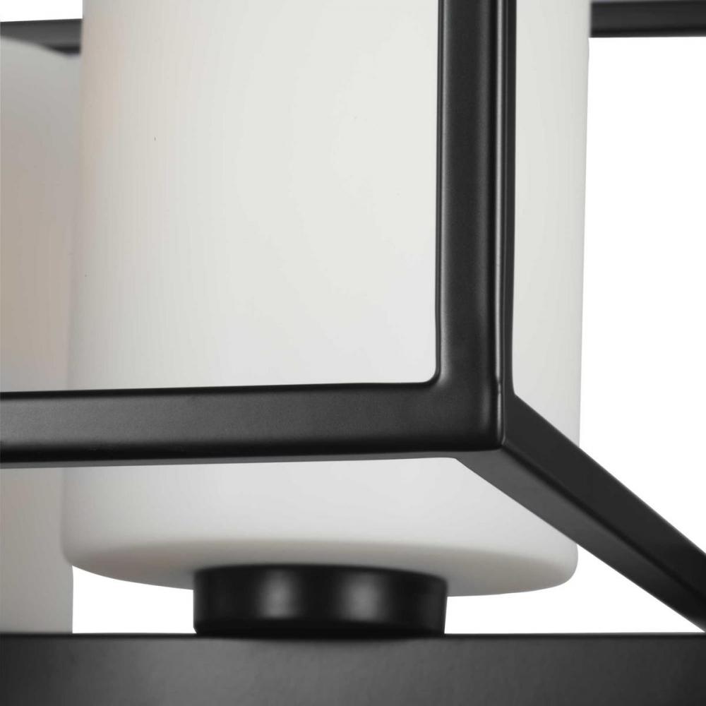 Beautiful opal glass shades visually calm the sharp edges of the boxy frame in a masterful stroke of design excellence.;The frame is coated in a classic black finish that contrasts the light shades.;The light fixture is just right for spaces in need of a s