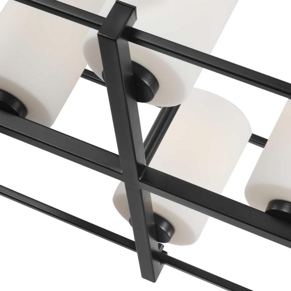Chadwick Collection Four-Light Matte Black Etched Opal Glass Modern Chandelier Light