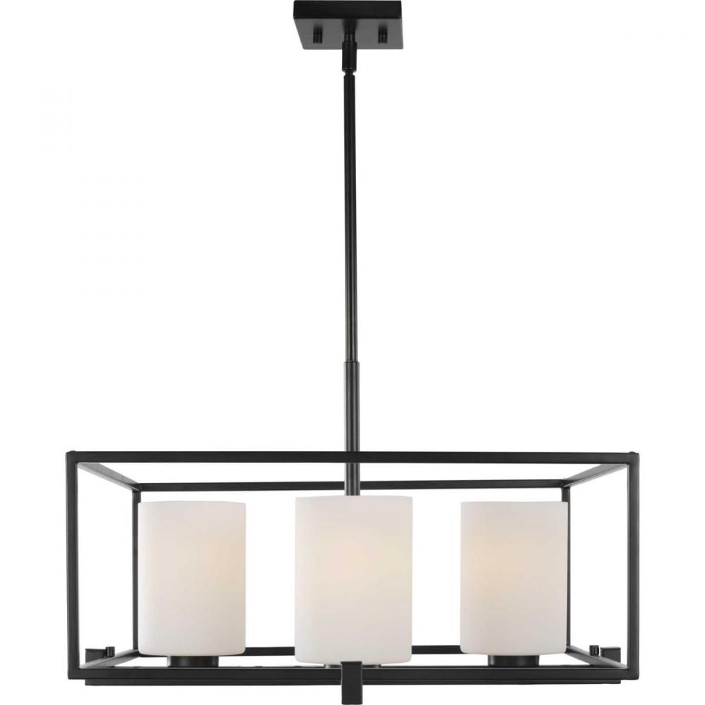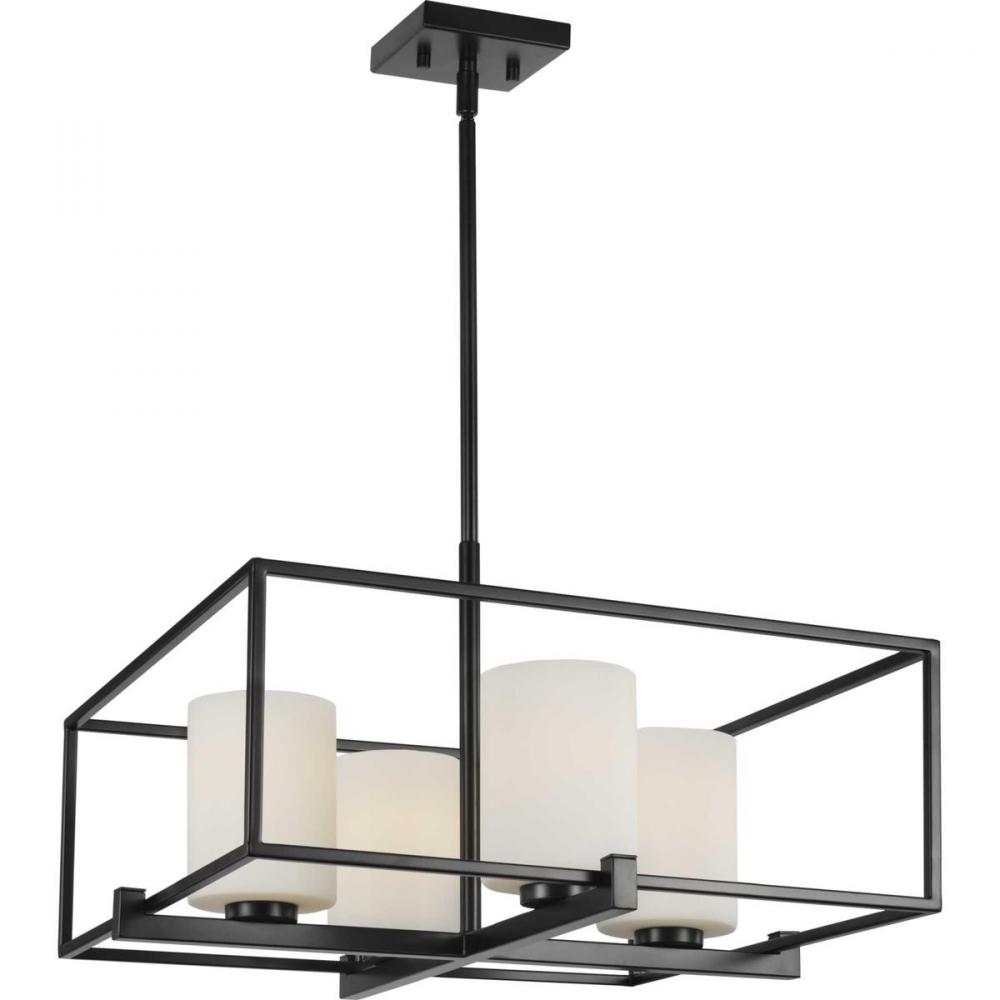 Progress P400226-031 - Chadwick Collection Four-Light Matte Black Etched Opal Glass Modern Chandelier Light