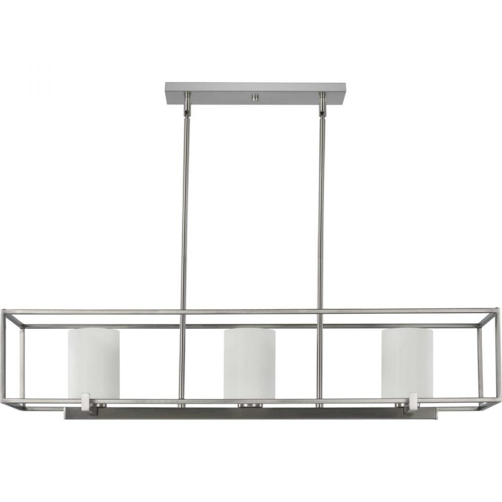 Progress P400225-009 - Chadwick Collection Three-Light Brushed Nickel Etched Opal Glass Modern Chandelier Light