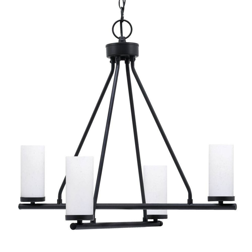 Toltec Lighting 2804-MB-801B Trinity 4 Light, Uplight, Chandelier Shown In Matte Black Finish With 2.5 White Muslin Glass