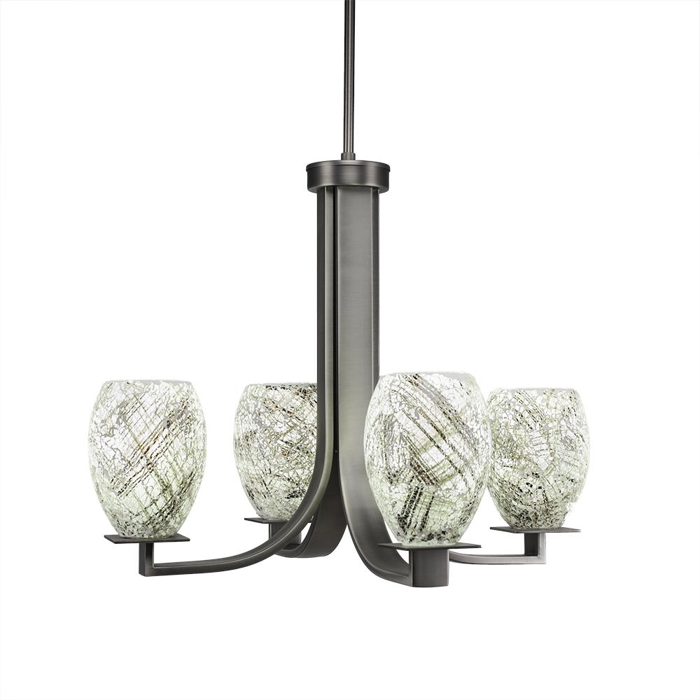 Toltec Lighting 574-GP-5054 Apollo 4 Light, Uplight, Chandelier With Hang Straight Swivel Shown In Graphite Finish With 5 Natural Fusion Glass