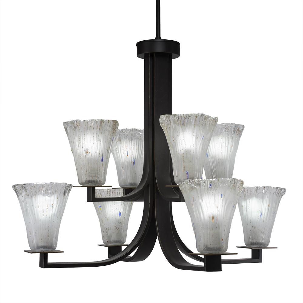 Toltec Lighting 578-DG-721 Apollo 8 Light, Uplight, Chandelier With Hang Straight Swivel Shown In Dark Granite Finish With 5.5 Fluted Frosted Crystal Glass