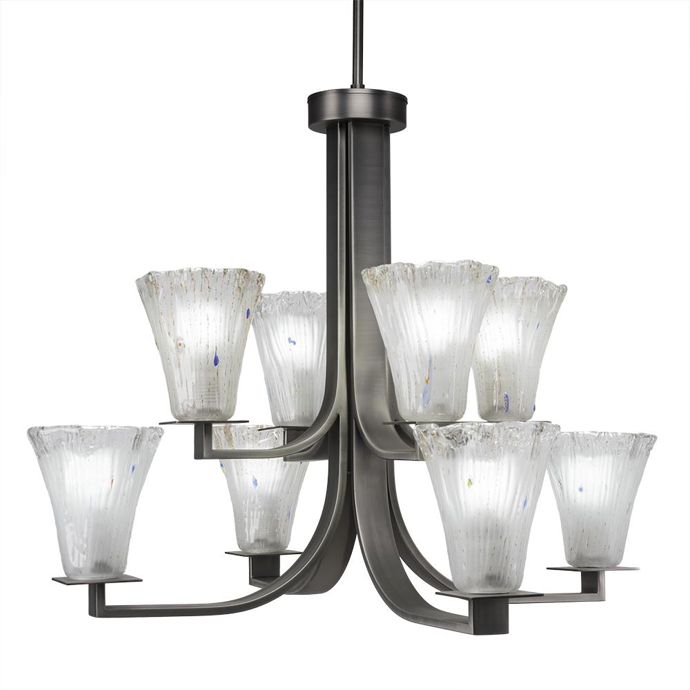 Toltec Lighting 578-GP-721 Apollo 8 Light, Uplight, Chandelier With Hang Straight Swivel Shown In Graphite Finish With 5.5 Fluted Frosted Crystal Glass