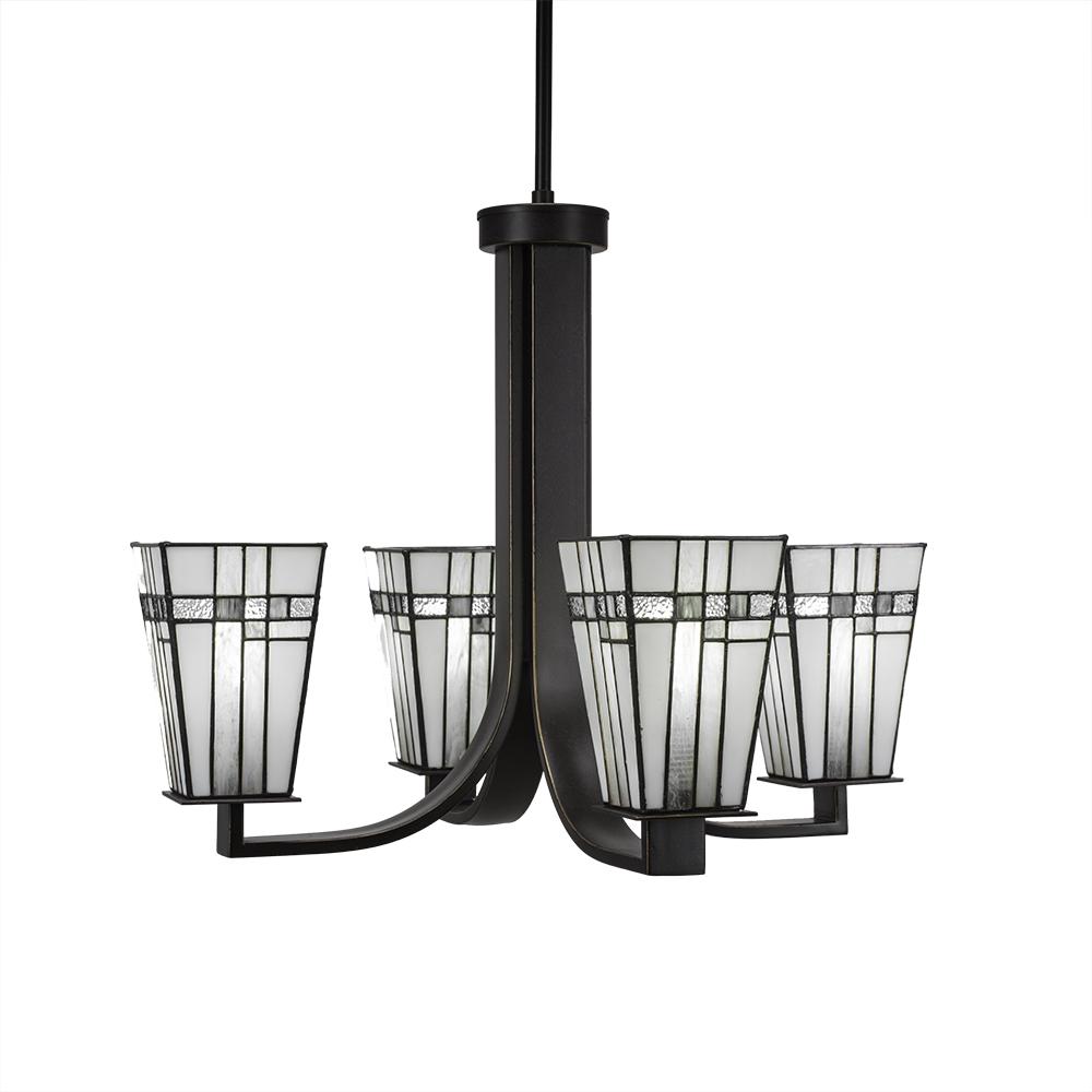 Toltec Lighting 574-DG-9554 Apollo 4 Light, Uplight, Chandelier With Hang Straight Swivel Shown In Dark Granite Finish With 5 Square New Deco Art Glass