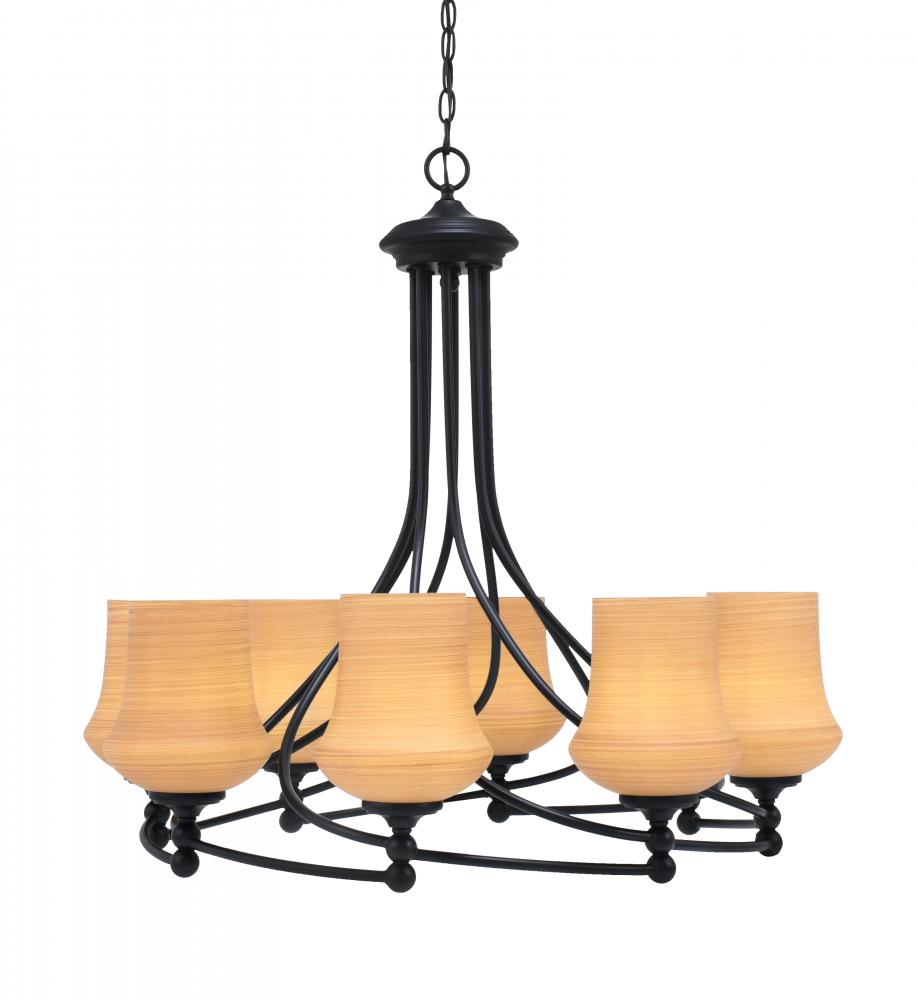Toltec Lighting 908-MB-680 Capri 8 Light, Uplight, Chandelier Shown In Matte Black Finish With 5.5 Zilo Cayenne Linen Glass