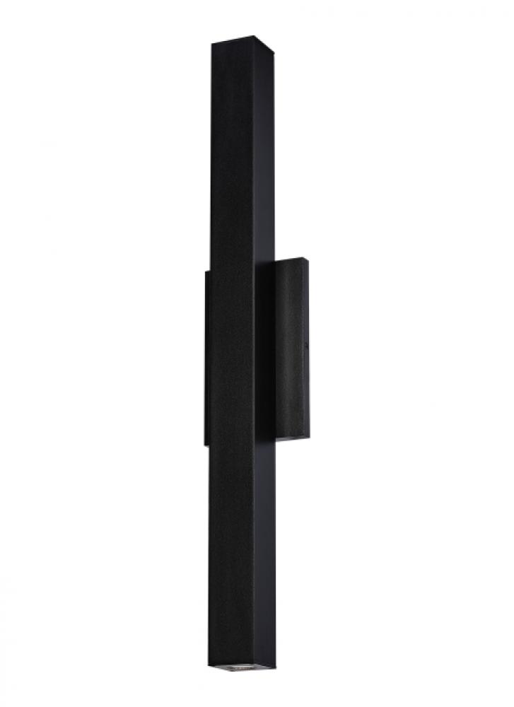 Strikingly elegant in its simplicity, the Chara Square 26 by Sean Lavin for Visual Comfort Modern is an squared wall sconce elongated for a modern industrial look. Chara produces abundant up and down lighting for indoor or outdoor illumination. Available in multiple sizes and comes with a modern Black finish.