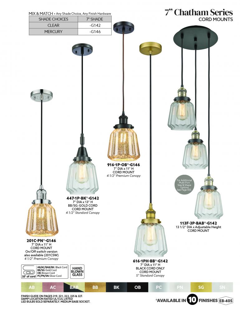 Innovations Lighting 201C-AB-G146-LED - Chatham - 1 Light - 7 inch - Antique Brass - Cord hung - Mini Pendant